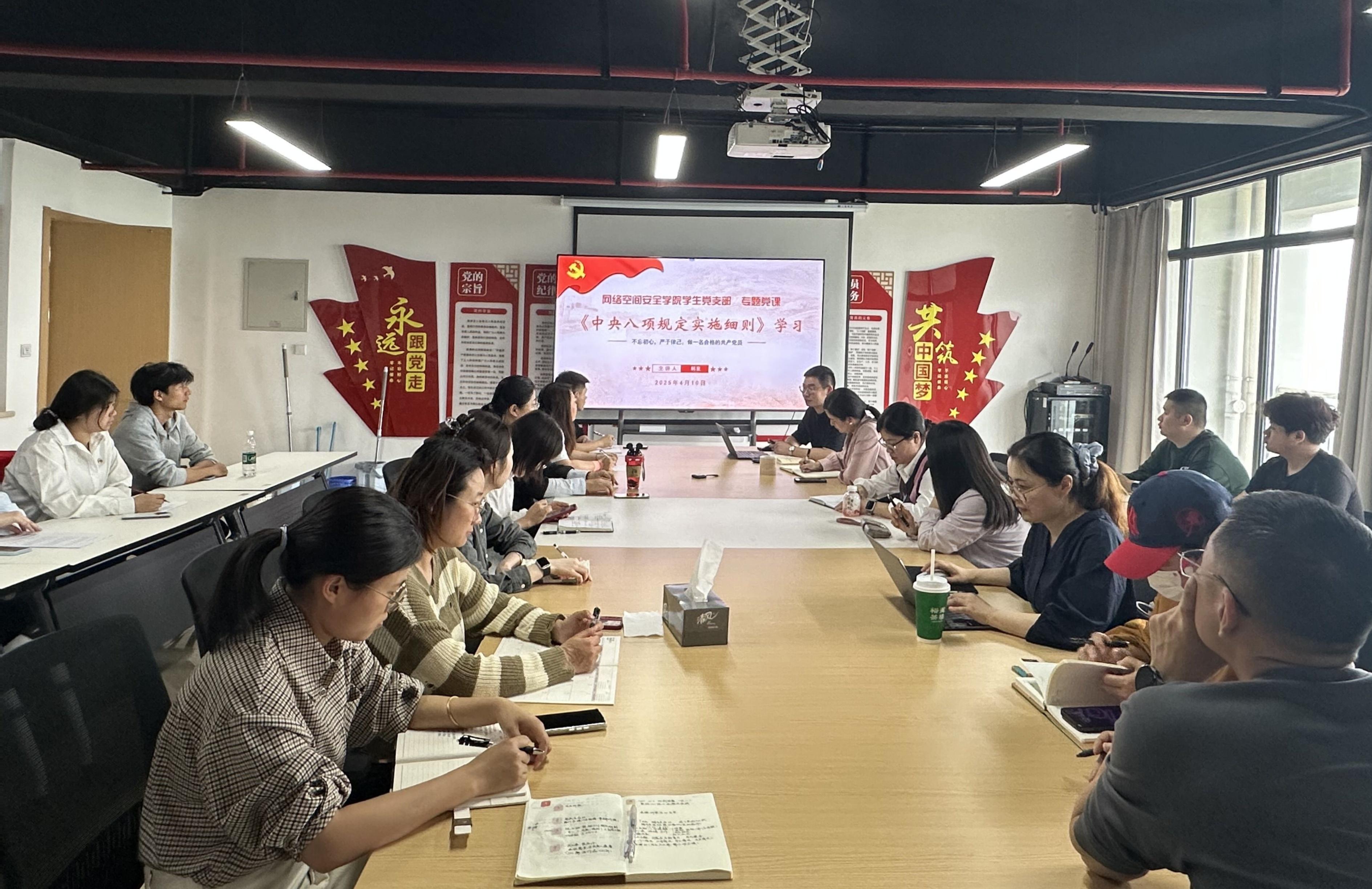 韩泉领学《中央八项规定实施细则》,共同了解中央八项规定的出台背景及核心内容,熟知中央八项规定精神的核心含义,共读《习近平关于加强党的作风建设论述摘编》,明确支部全体党员要严守纪律红线,杜绝麻痹思想。通过集中学习与交流讨论,使支部成员深刻理解八项规定精神,从自身做起,务实担当,切实做到自警、自醒、自勉,主动将中央八项规定精神融入内心、转化为行动自觉,把各项要求一丝不苟地落实到日常工作的每一处细微环节,为学院高质量发展贡献力量!(文/摄 徐旻珉 审/韩泉、周垚)
