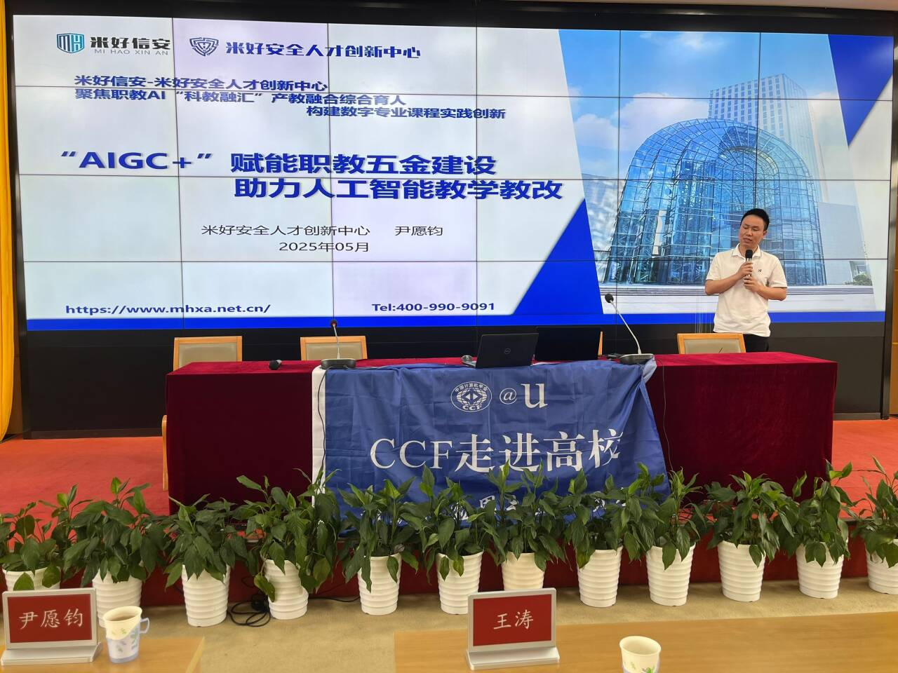 米好信安CTO尹愿钧以“AIGC+”赋能职教五金建设-助力人工智能教学教改为题进行报告,探索“AIGC+”职教“五金建设”(金课、金师、金地、金教材、金基地)的深度融合,米好信安通过AIGC赋能个性化课程内容、辅助教师优化教学方法、构建虚实结合的实训场景、开发模块化智能教材,推动职业教育从课程设计到实践场景的全面革新。