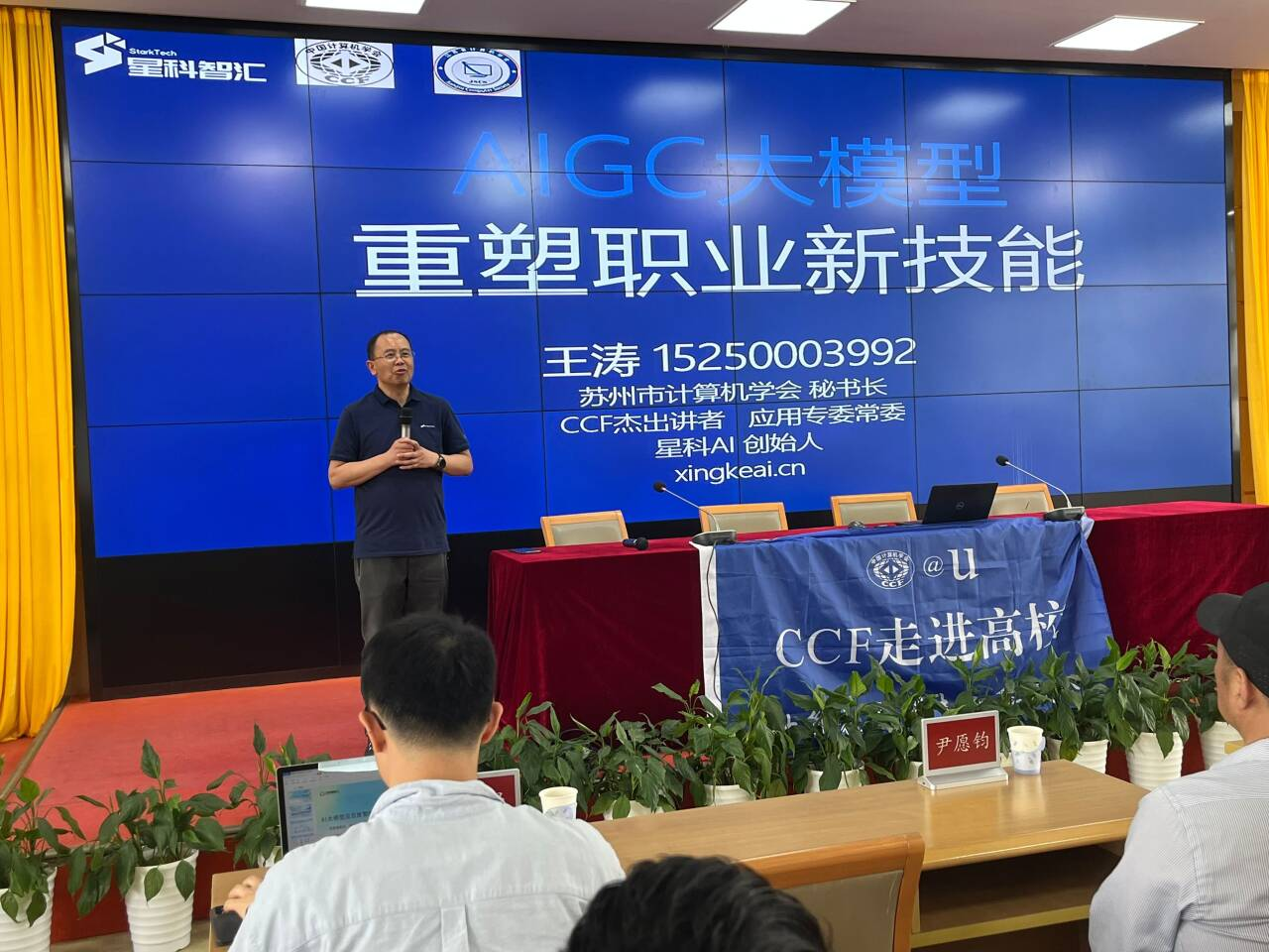 苏州计算机学会秘书长王涛以“AIGC大模型重塑职业新技能”为题进行了主题报告,报告从工具链,应用链,产业链等多个视角,探讨AIGC大模型对教育和科研的深度影响。