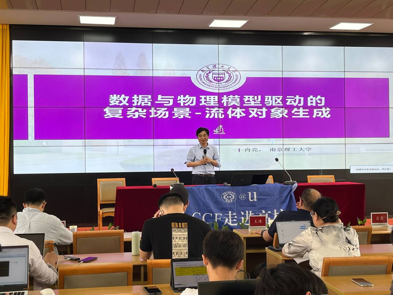 南京理工大学肖亮教授聚焦学术前沿以“数据与物理模型驱动的复杂场景-流体对象内容生成”为题,介绍基于可微渲染的三维视觉生成的新范式和研究进展,涵盖神经辐射场,3D高斯溅射等表达模型;结合复杂场景-流体对象内容生成,在物理信息驱动神经网络框架下,重点介绍和分析拉格朗日类流体的人工智能生成方法,并展示可能的物理仿真引擎应用。